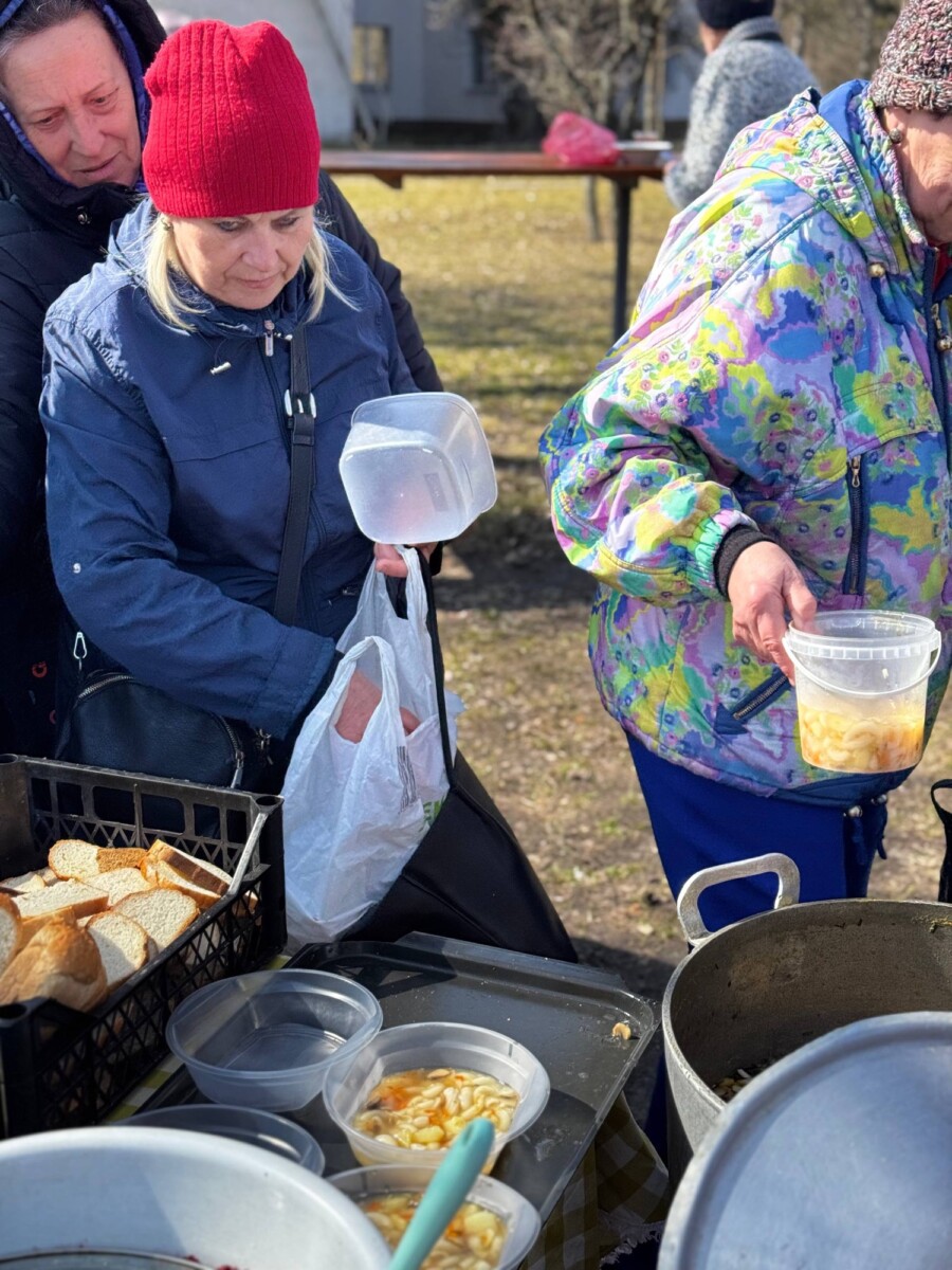 Активні парафіяни разом з кліром на прихрамовій території роздавали їжу прихожанам та всім, хто цього потребує.