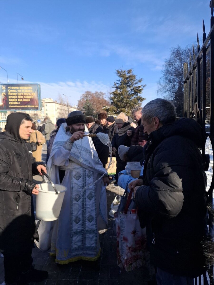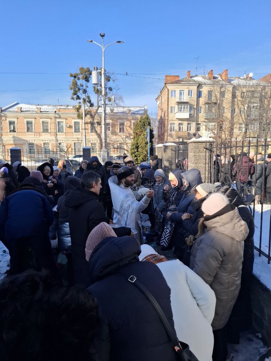 Після закінчення богослужіння, клірик храму священник Андрій Овсій окропив вірян святою водою і привітав зі святом.