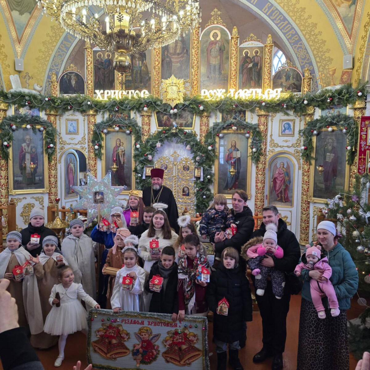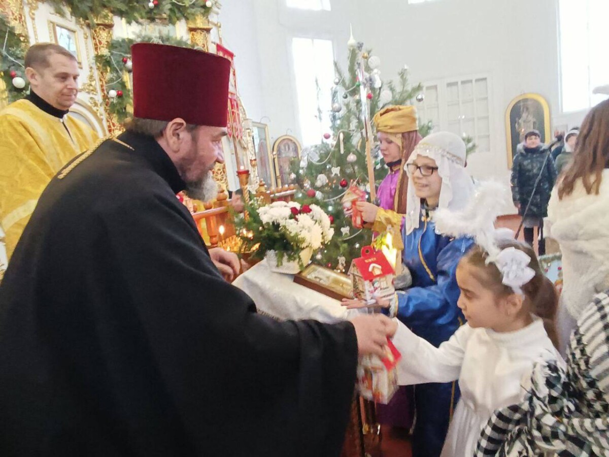 7 січня 2026 року, у свято Різдва Христового, після святкової Божественної літургії в Іоанно-Богословському храмі міста Миргород настоятель храму протоієрей Петро Товстяк привітав парафіян зі святом та вручив дітям солодкі подарунки.