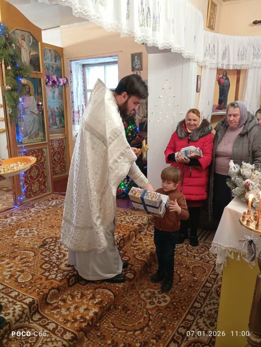 7 січня 2026 року, в день свята Різдво Господа Нашого Іісуса Христа, після Божественної літургії настоятель Свято-Вознесенського храму села Покровське Решетилівського благочинія ієромонах Платон вручив дітлахам солодкі подарунки.