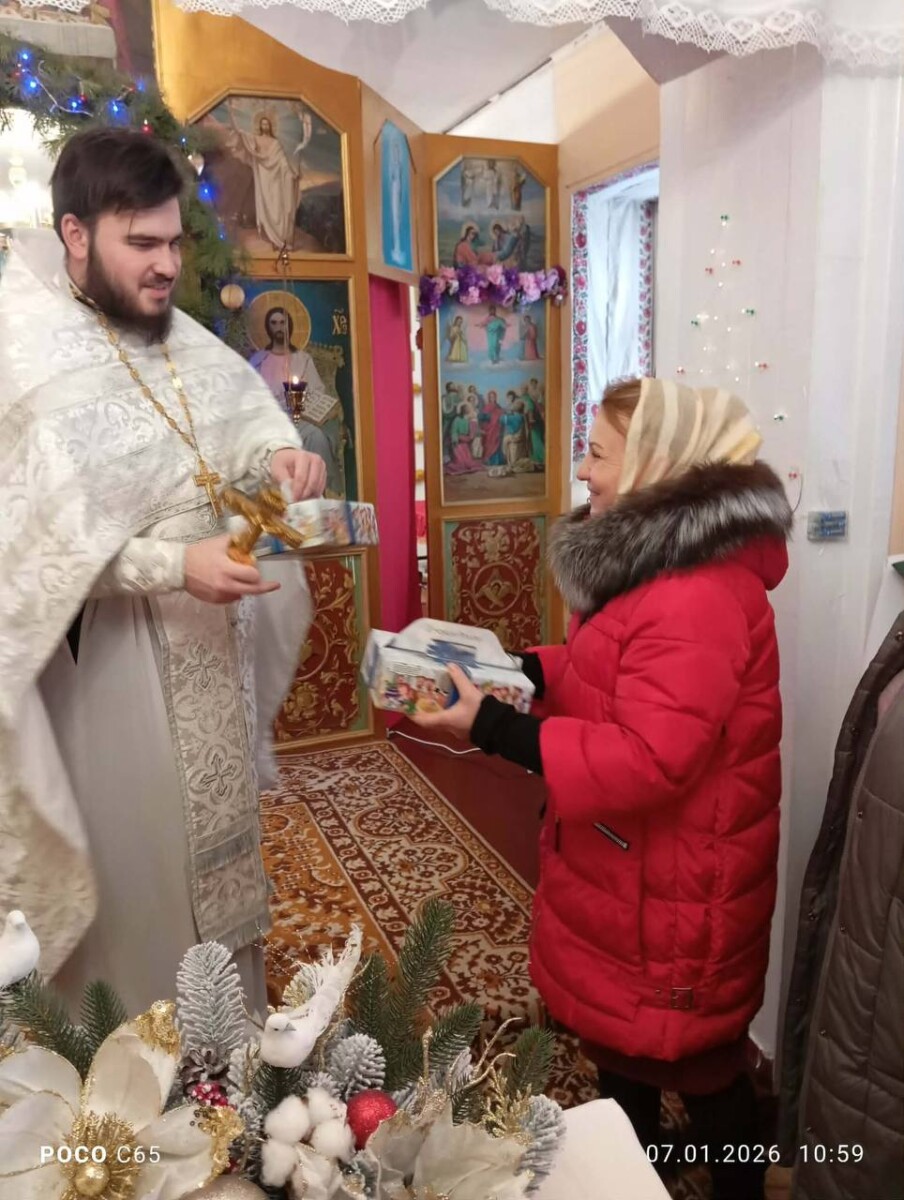 7 січня 2026 року, в день свята Різдво Господа Нашого Іісуса Христа, після Божественної літургії настоятель Свято-Вознесенського храму села Покровське Решетилівського благочинія ієромонах Платон вручив дітлахам солодкі подарунки.