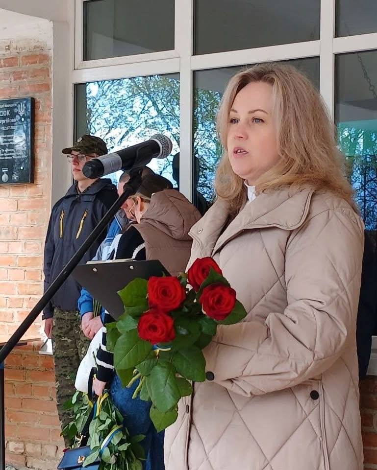 Під час виступу секретар Котелевської селищної ради Наталія Сідненко зазначила: «Ця меморіальна дошка — не просто знак. Це наш “код пам’яті”, який об’єднує покоління та нагадує про ціну нашої свободи…».